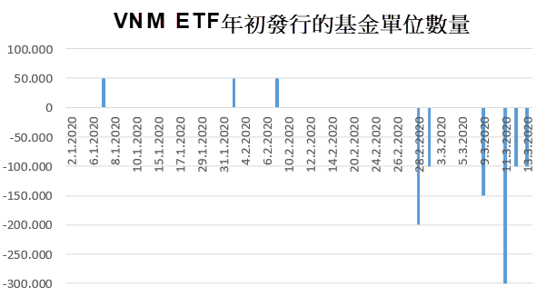 交易數據顯示,在3月9日至13日這一周,VNM ETF被贖回65萬基金單位,相當於811萬美元(1,900億越盾),這是該基金連續第三週被撤資。 目前,VNM ETF投資組合越股佔70%,預估,該基金上週在市場上拋售約1,320億越盾。