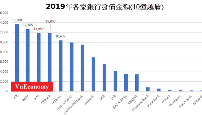 據HNX數據顯示, VIB( Vietnam International Commercial Joint Stock Bank )在2019年大舉發債16次共籌資 137,000億越盾,為業界發債最多的銀行…