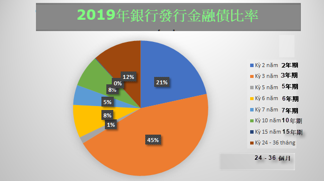 河內證交所(HNX)2019年的統計資料顯示, 去年銀行業共發債 1,087,230 億越盾 , 佔該年總發債的 36.64% , 債期平均為 3.72 年 。債券期限多為 2或3年期。大多數機構投資人購買上述債券。